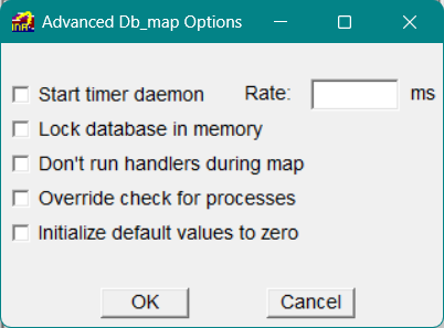To display more advanced options, click the Advanced button in the lower right-hand corner of the Db_map tab. The Advanced Db_map Options dialog opens, as shown in Figure 9.